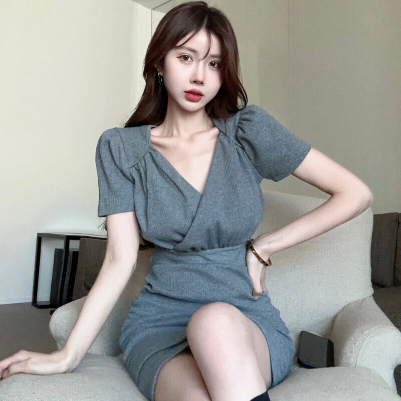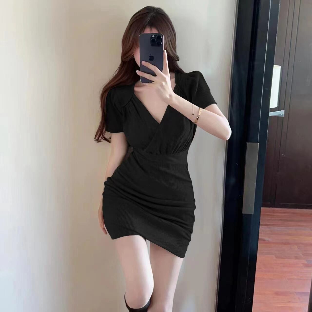 セクシースリムボディコングレーペンシルドレスミニ Y2k 半袖誕生日 Vestidos デワイルドプリーツドレス ショート ハーフスリーブ