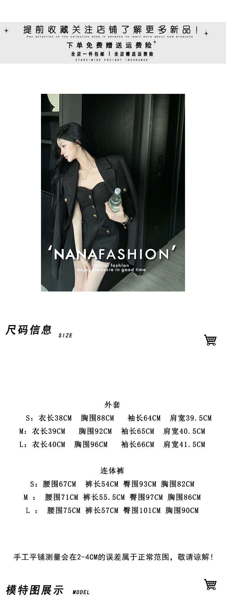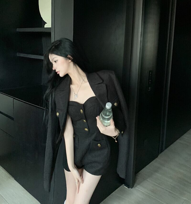 ロンパース黒ロンパーススーツカーディガン黒ツイードジャケットブレザー 2 個セット Y2k ショーツセクシーコート秋 ブラック オータム 秋物 ブルマー