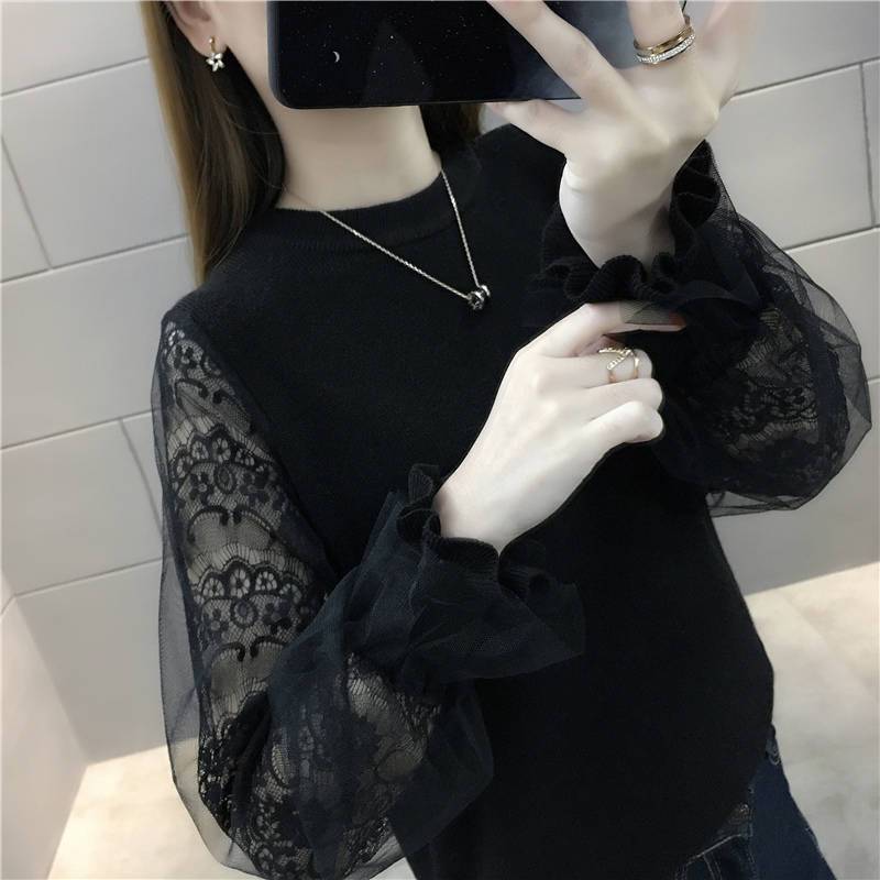 ニットセーター パッチワーク フェイクツー ルーズ メッシュ ジャージー グレー セーター ワイルド フリル フレア 特大セーター セーター トップス