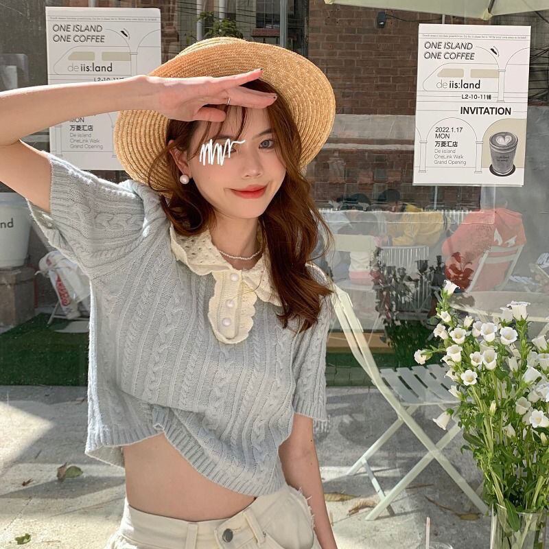 プルオーバー セーター プル スプリング ese 甘い ドール ネック 半袖 ニット セーター セーター ジャンパー ツイスト トップス ショート ハーフスリーブ 大人ガーリー スウィート キュート カジュアル 春物