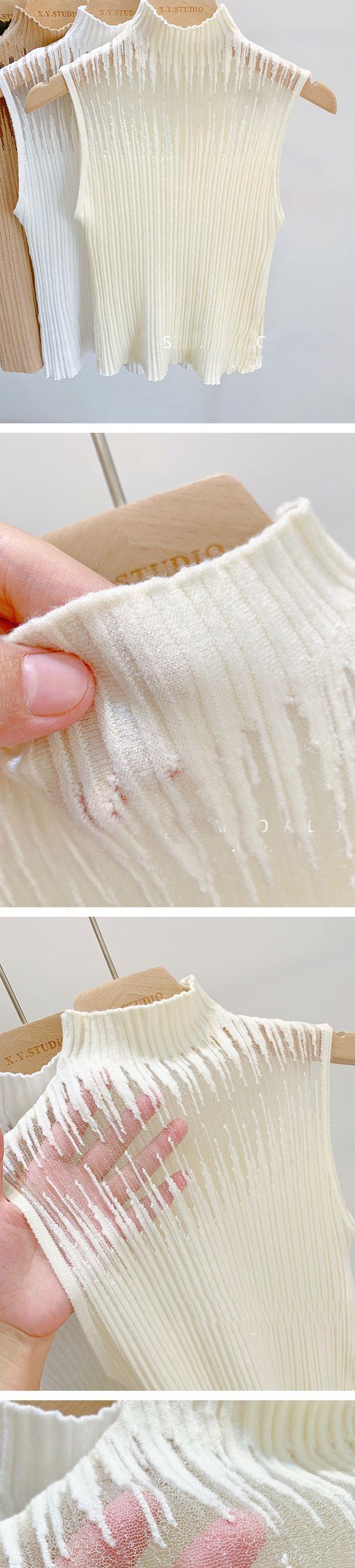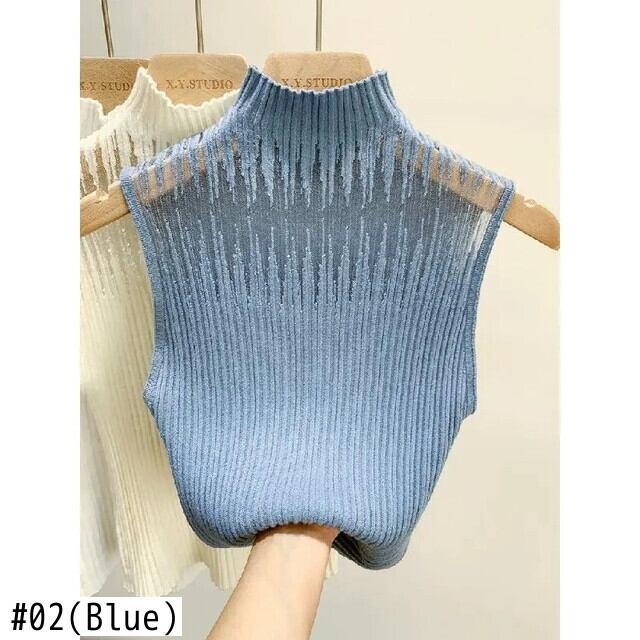 中空ガーゼタンクトップ タートルネック ノースリーブ スリム キャミソール ニット 無地 シック コルセット 夏 レディース チューブトップ シャツ サマー 夏物 ソリッドカラー
