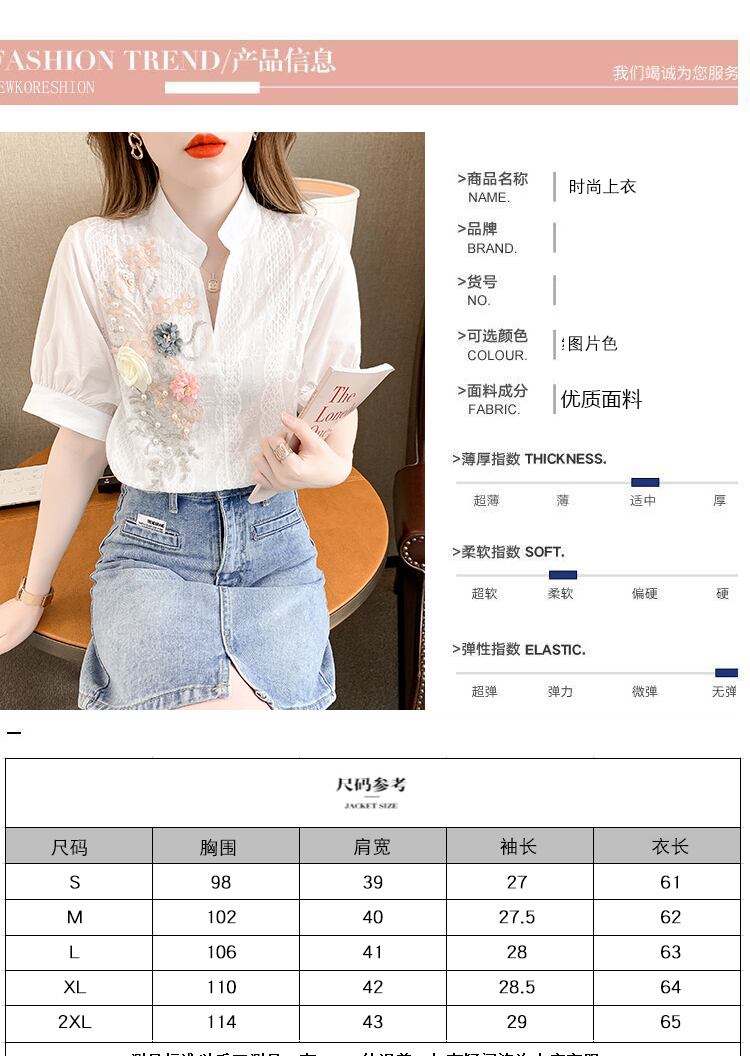 レトロ刺繍トップ ホワイト レース シャツ s 半袖花柄ブラウス夏シャツ ハーフスリーブ サマー 夏物