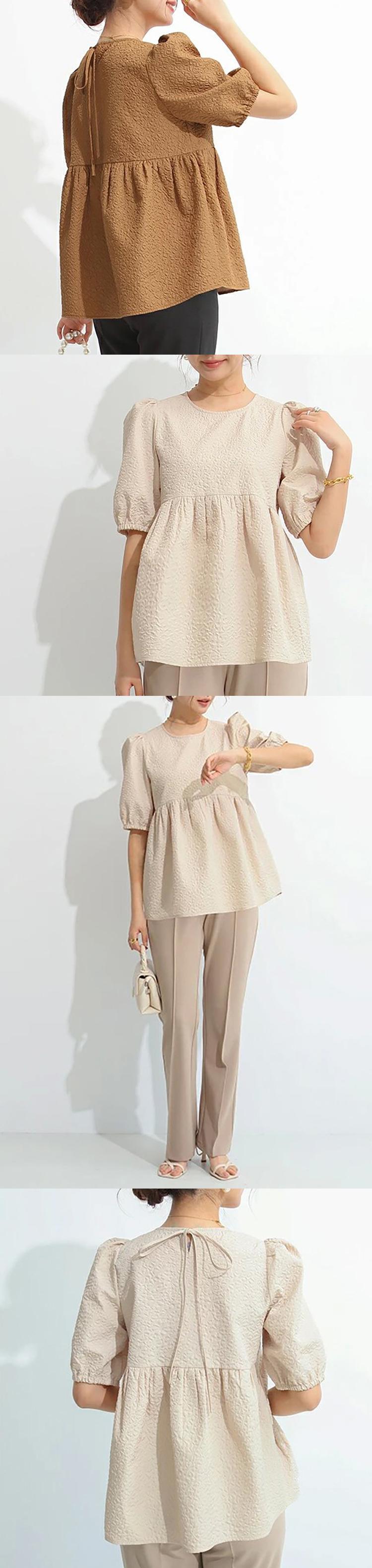 トップス s ジャガード 半袖 レディース ブラウス バブルスクエア プリーツシャツ ドールシャツ 夏 ショート ハーフスリーブ サマー 夏物 スクウェア