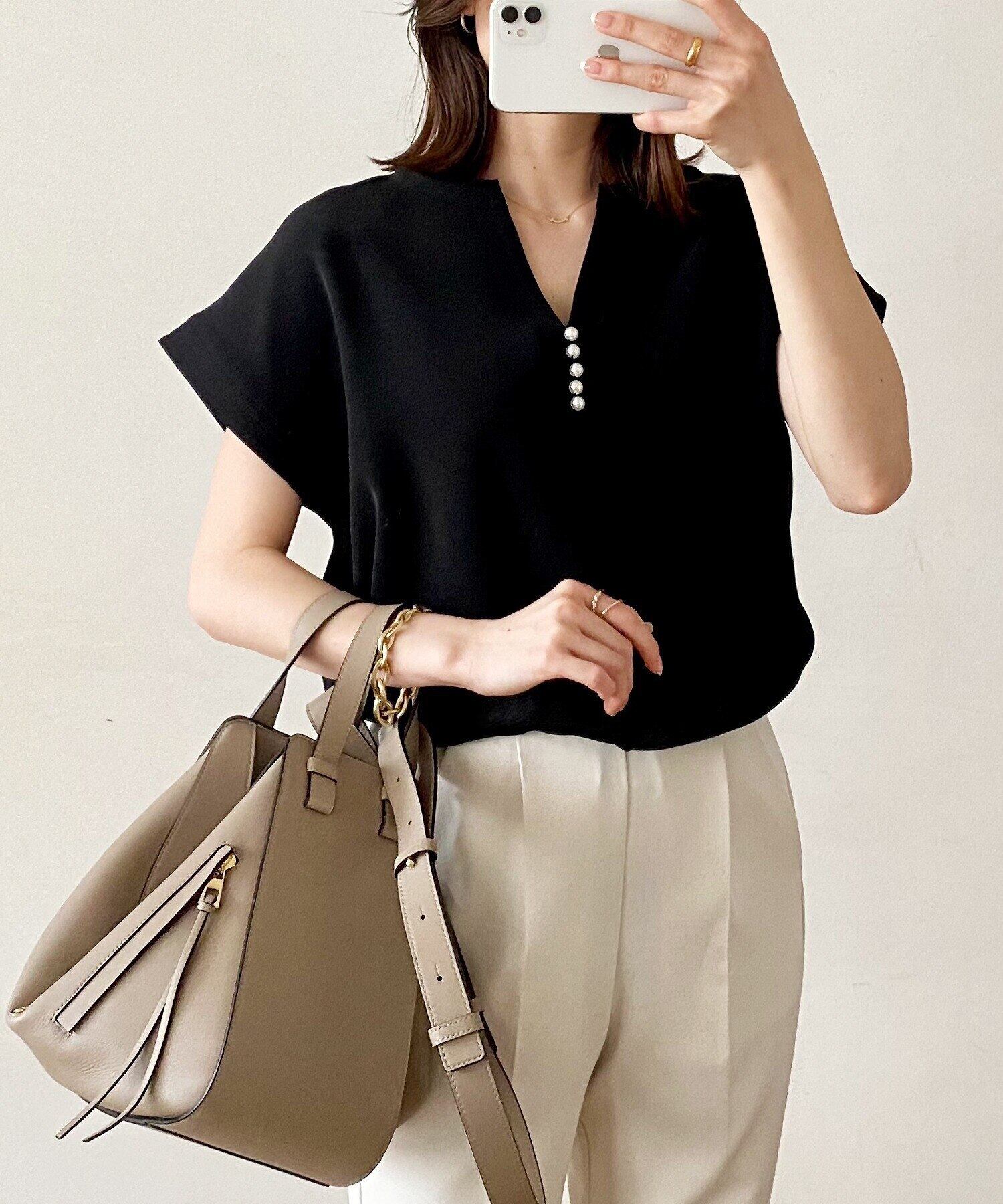 Ropa デ Y2k トップ V ネックビーズ半袖 Tシャツ ese スタイル Y2k ワイルドシャツ美的グラフィック Tシャツ ショート ハーフスリーブ Vネック