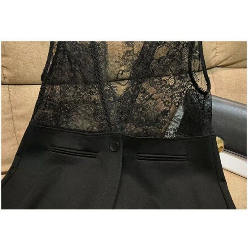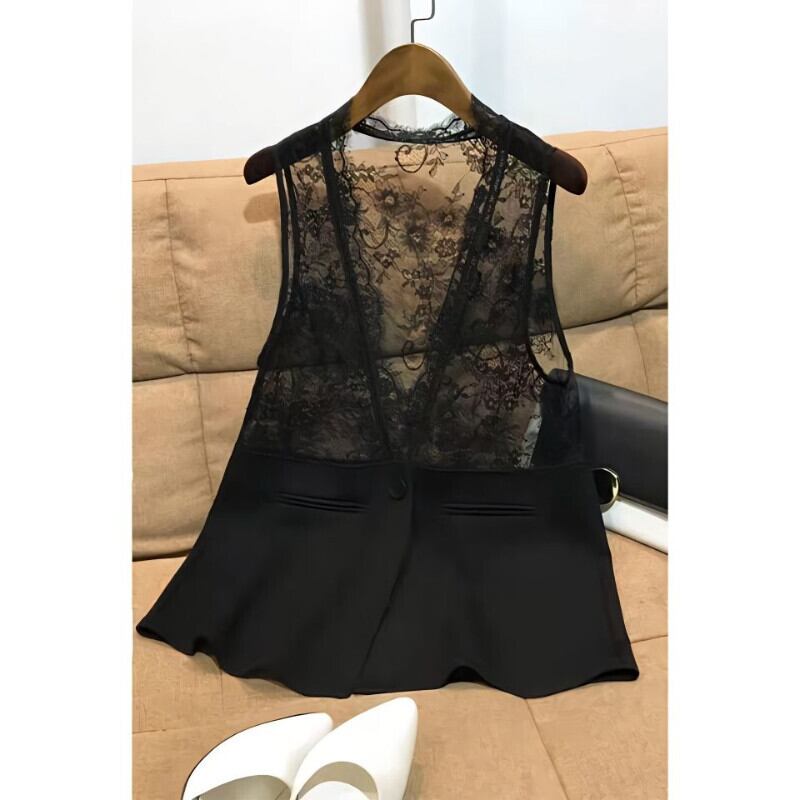 ブレザー Chalecos ワンボタン V ネック黒レースベスト春コートスーツ Ropa チョッキジャケット夏トップス ブラック スプリング 春物 サマー 夏物 Vネック