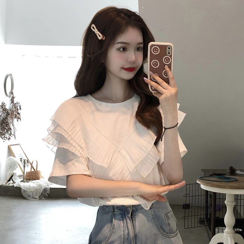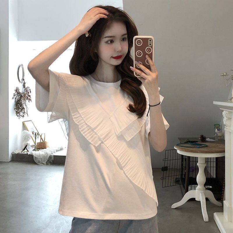 グラフィック Tシャツ 美的服 グランジ Y2k トップ ロパ Tシャツ フリル ルーズ パッチワーク 半袖 Tシャツ サマードール ショート ハーフスリーブ 夏物
