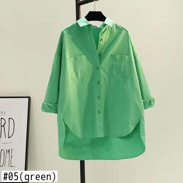 シャツブラウス春夏特大コットン長袖ルーズストリートシャツトップ ロング スプリング 春物 サマー 夏物