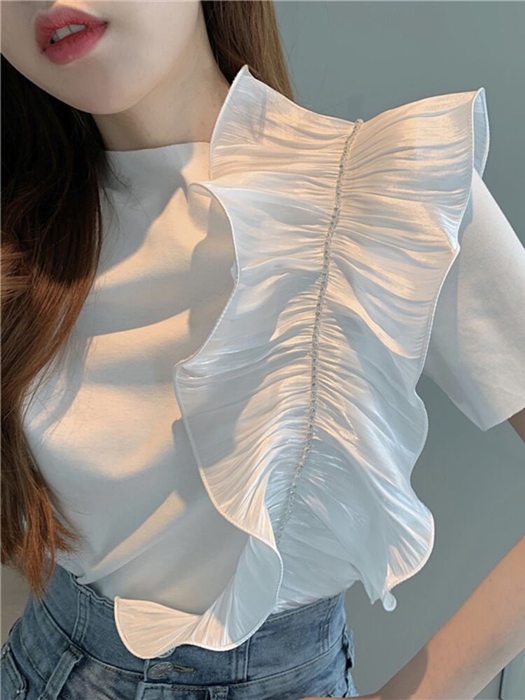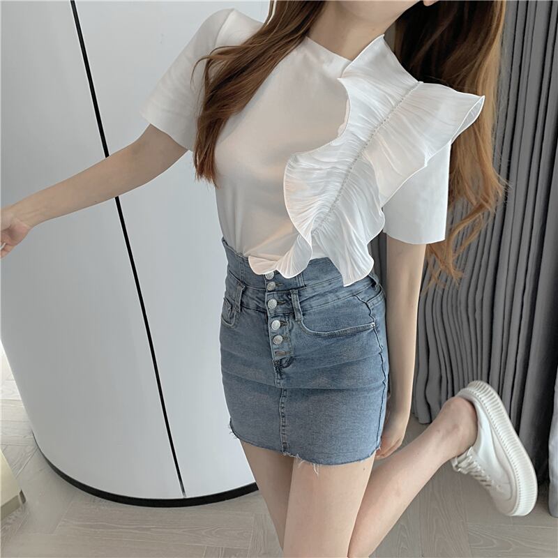 Y2k 服グランジ美的緩いフリル半袖 Tシャツ Ropa グラフィック Tシャツ綿白 Tシャツ ショート ホワイト コットン ハーフスリーブ