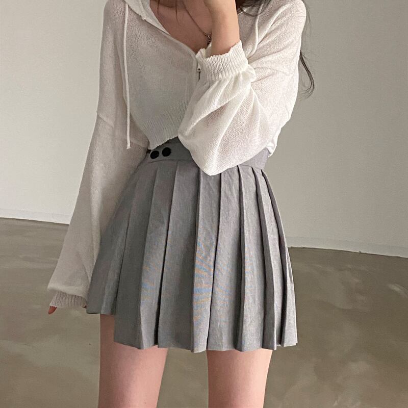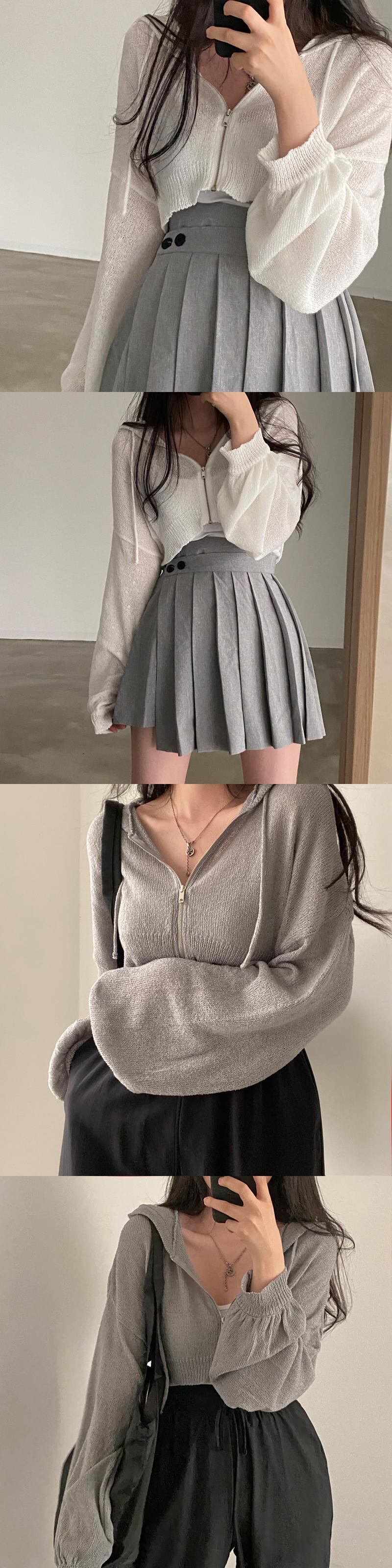 巾着 ジッパー ランタン スリーブ ショート フード付き セーター クロップド カーディガン 薄手 シャツ グレー カーディガン フェミニーノ 春 ランタンスリーブ スプリング 春物