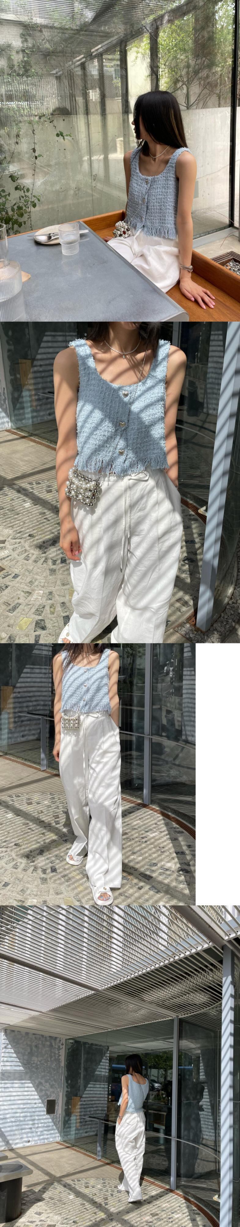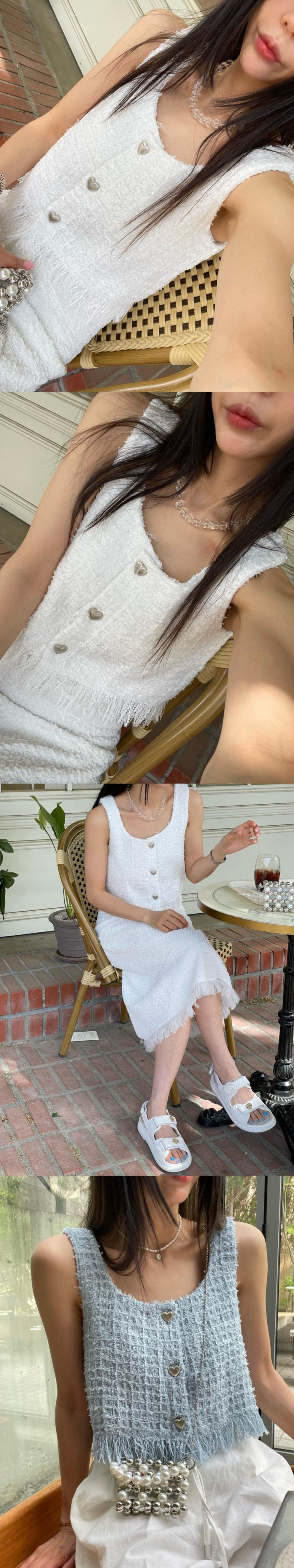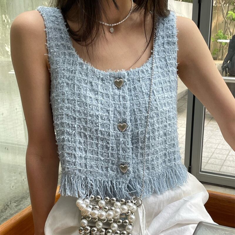 Chaleco 気質スクエア メタル愛ボタン Tels キャミソール タンク トップ セクシー クロップ ホワイト ツイード シャツ格子縞 ベスト ニット Y2k スクウェア