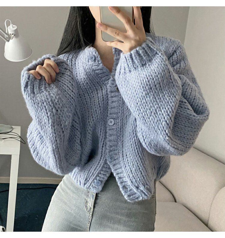 Y2k レディース カーディガン セーター ニット クロップド ショート ロング スリーブ クロップトップ Vネック 服 キャンディカラー ピンク カーディガン 長袖