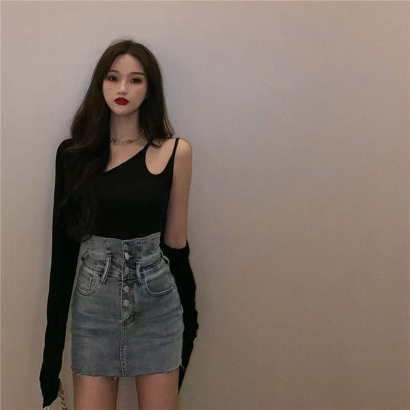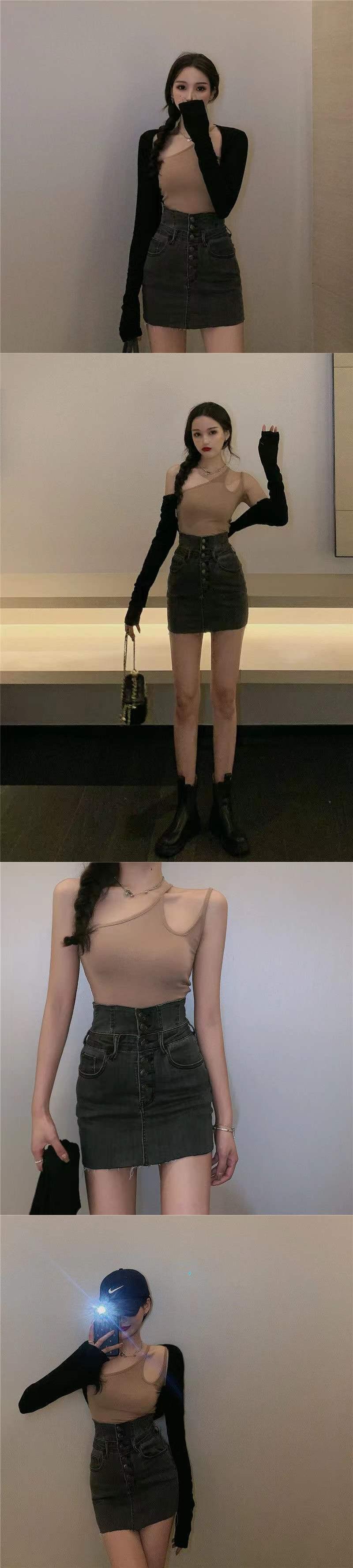 デニムスカートシンプルトレンディストリートウェアすべて一致ファルダスタイルシック夏ペチコートウエスト サマー 夏物