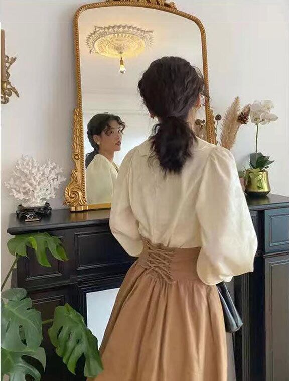 ダークブラウンマキシスカート原宿ポケットレースアップロングスカート夏秋服 Y2k スタイル かわいい サマー 夏物