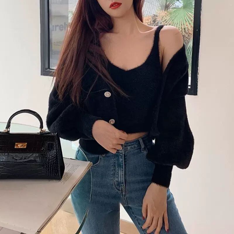 ミンク カシミヤ キャミソール ソフト ショート ピンク カーディガン ジャケット 2 点セット スウィート セーター フリース モヘア ニット トップス 大人ガーリー キュート カジュアル