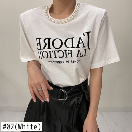 パッチワーク真珠 Y2k 服シックレタープリントトップス半袖 Tシャツ夏ショルダーパッド Tシャツ美的 ショート ハーフスリーブ サマー 夏物 パール