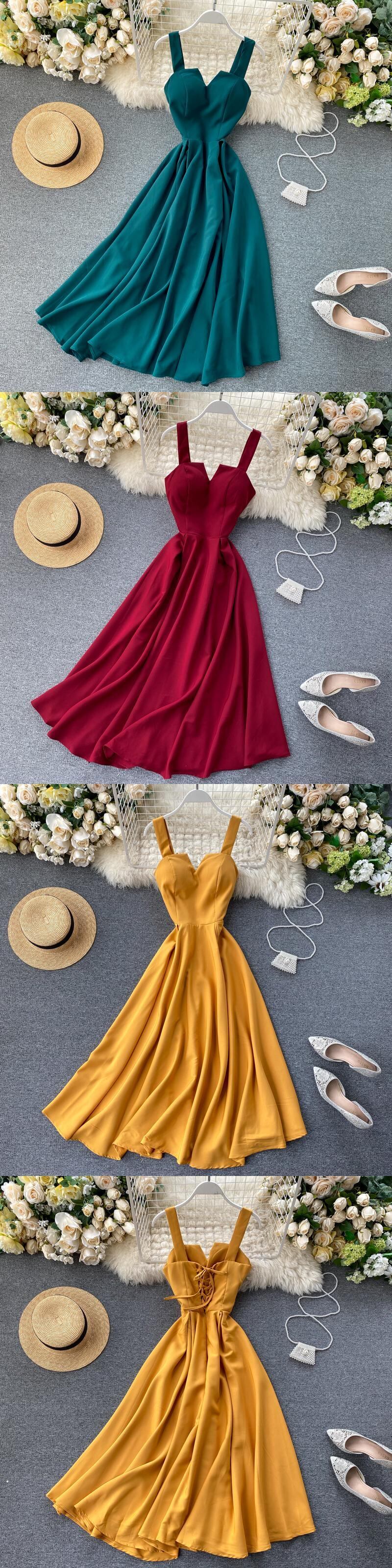 VバックレスソリッドビッグスインググリーンスパゲッティストラップドレスVestidos De Bohoドレスセクシーパーティードレス ソリッドカラー