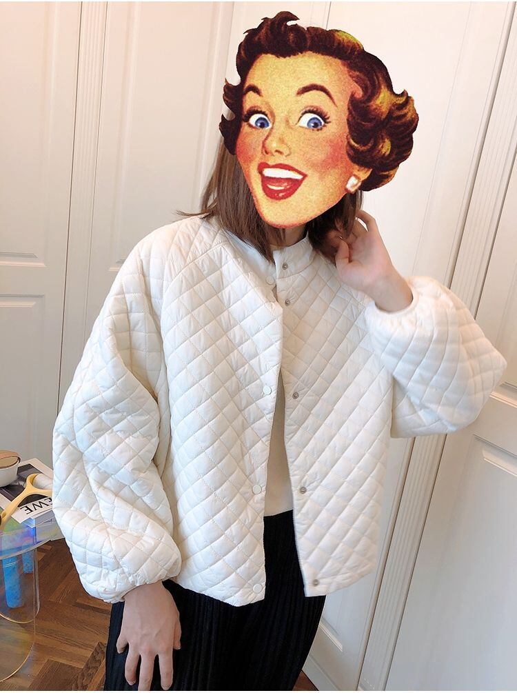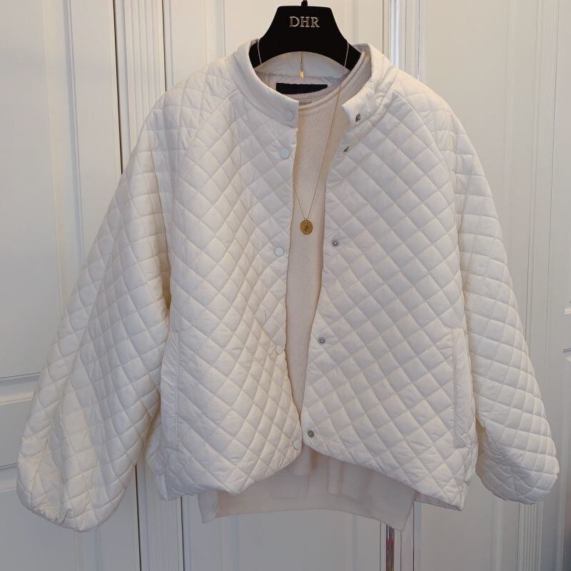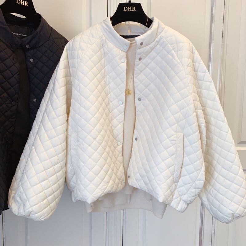 ショートボンバージャケットスタンドカラー黒パーカーセンスコットンジャケット暖かいバットスリーブチェック柄冬服アーガイル ブラック ウィンター 冬物