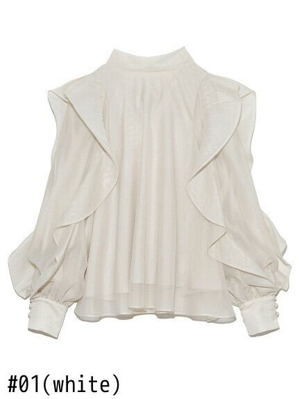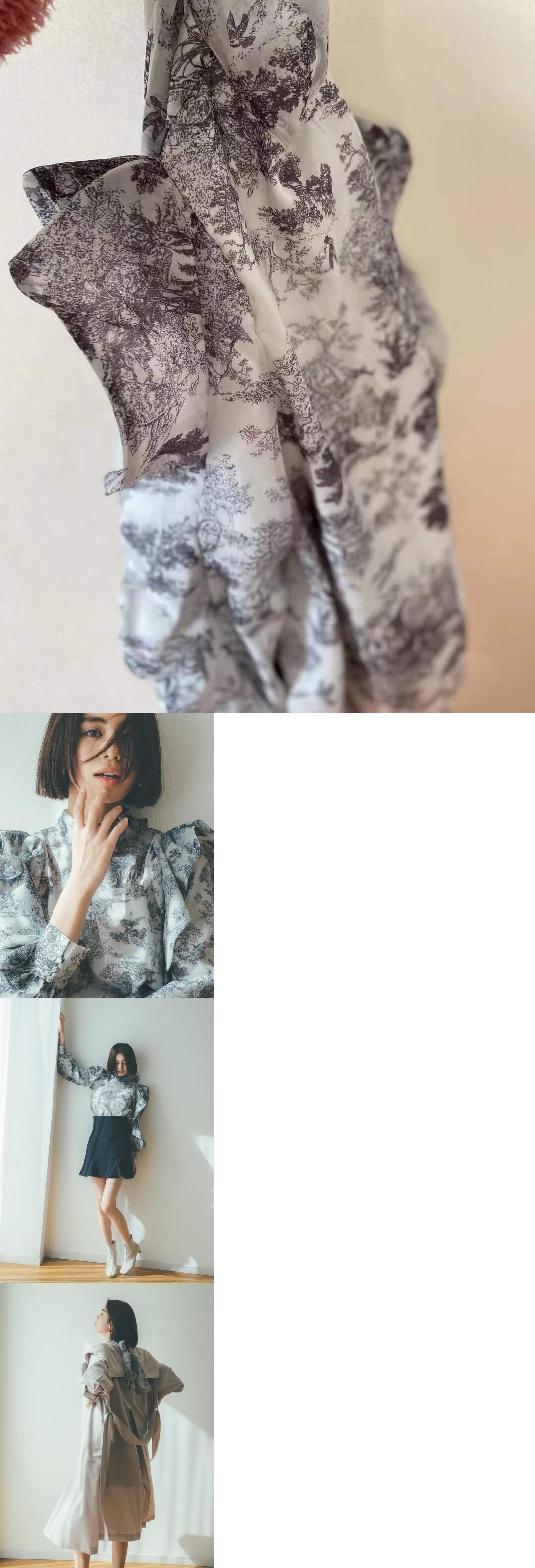 スタンドカラー巾着ボウブラウス春フリルパッチワーク長袖コートスタイルシャツトップスレトロ ロング リボン ラッフル スプリング 春物