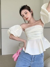 Summe セクシースラッシュネックストラップレスブラウストップスパフスリーブスリムショートシャツデモーダ