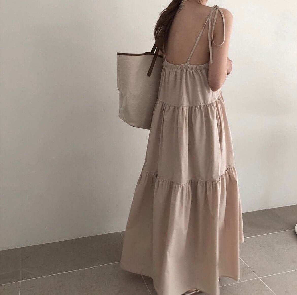 ミニマリスト気質 Y2k レースアップディープ V ネックルーズブラックキャミソールドレスマキシ Vestidos グレー誕生日ストラップレス Vネック