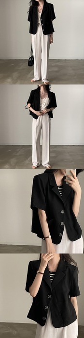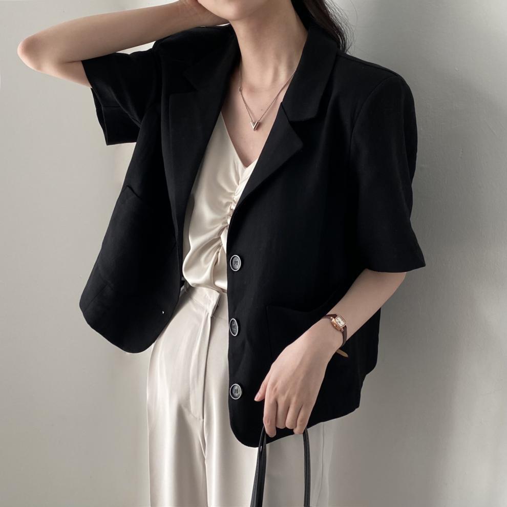 ノッチ半袖ブレザー Feminino 春ブレザー ミニマリスト気質 クロップド ブレザー ジャケット サマー コート ショート ハーフスリーブ スプリング 春物 夏物
