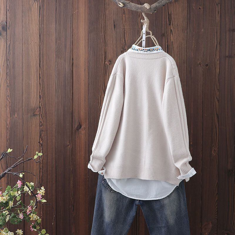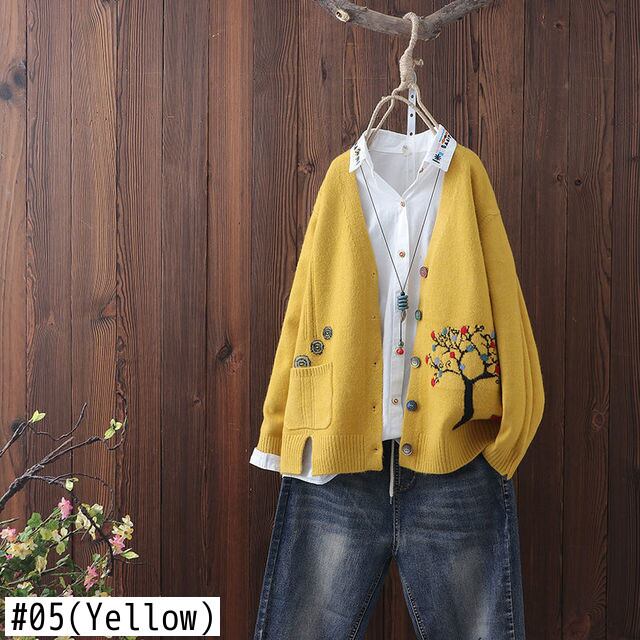 Fairycore 美学グランジオーバーサイズセーター秋生き抜く V ネック刺繍ニットカーディガン Y2k 服コートポケット オータム 秋物 Vネック