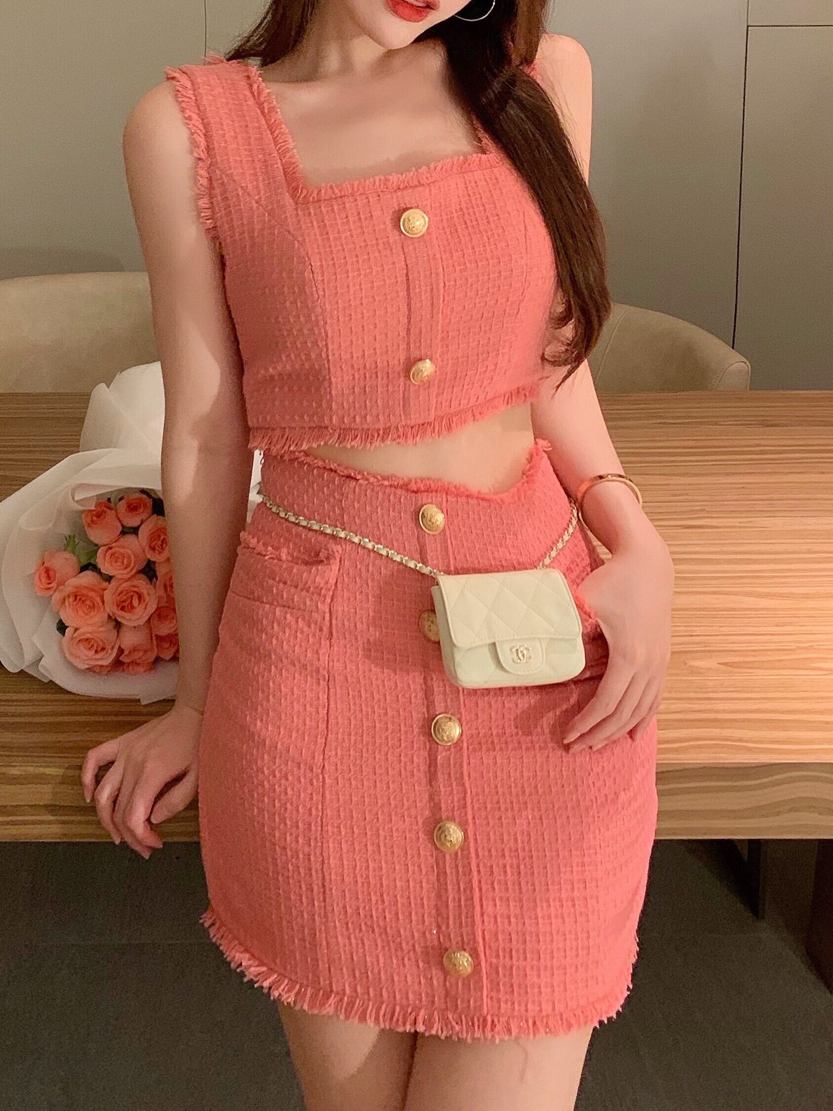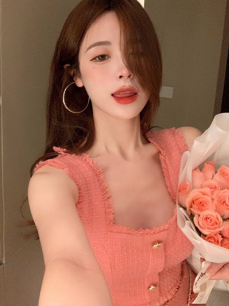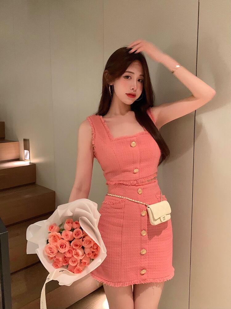 タンクキャミソールセクシー Y2k 気質シングルブレストボディコンペンシルスカートセットミニブラウス甘いシャツ 大人ガーリー スウィート キュート カジュアル