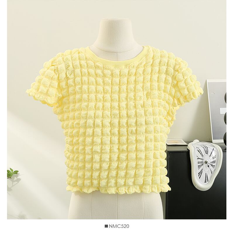 シャツ白グラフィック Tシャツクロップトップ Y2k 美的グランジ半袖 Tシャツ 3D チェック柄 Tシャツパフ ショート ホワイト ハーフスリーブ