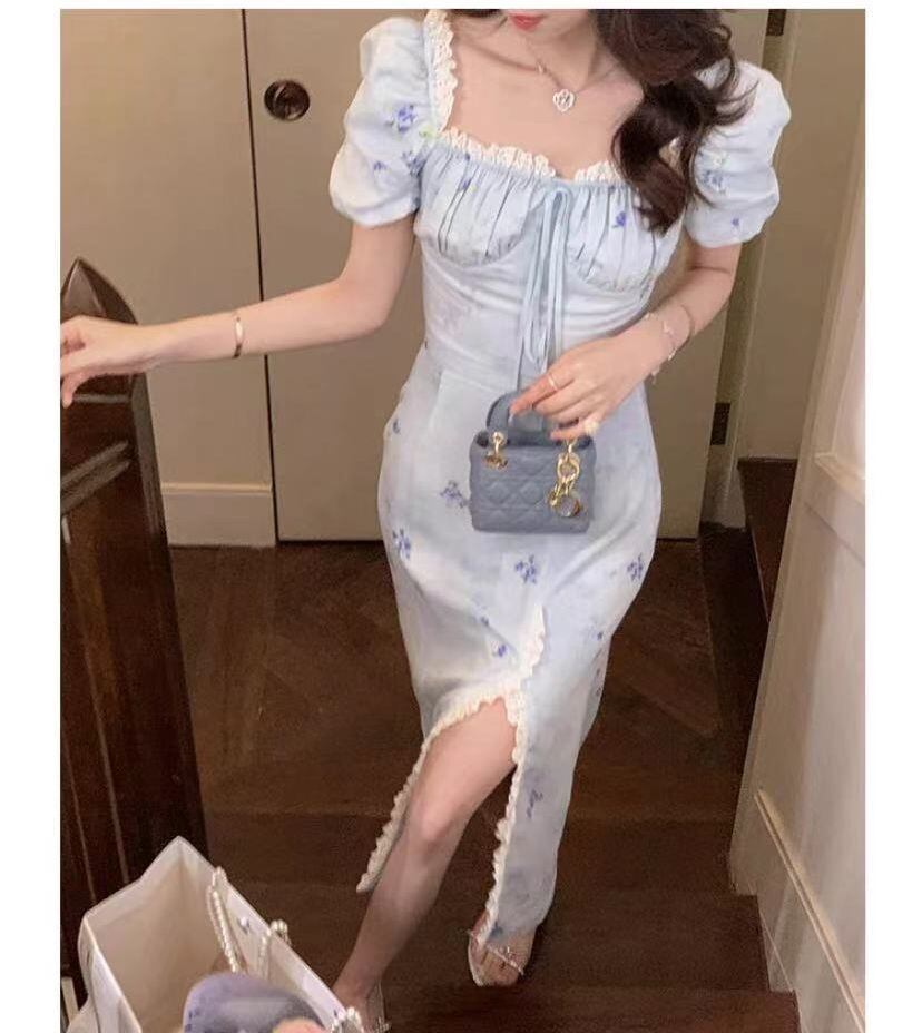 レースアップブルー花柄シャツビーチスタイルクロップトップスプリントサマーブラウススリムスプリットスカートセットレースフリル春Y2k 2セット スプリング 春物 夏物