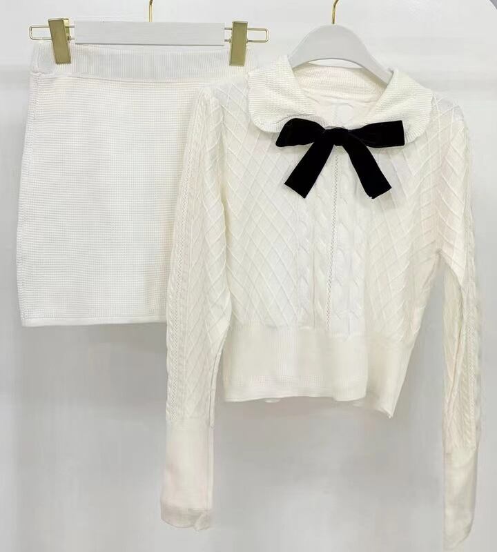 弓グレーツイストセーターニットトップスラップヒップセクシースカートセットツーピースセットレディース衣装Y2kトップスシックシャツ