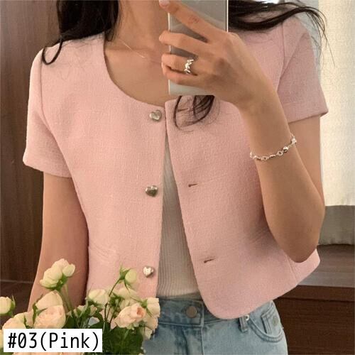 作物ピンクテーラードコート気質ツイードカーディガンラブボタンジャケット夏スタイルコート Ropa レッド サマー 夏物