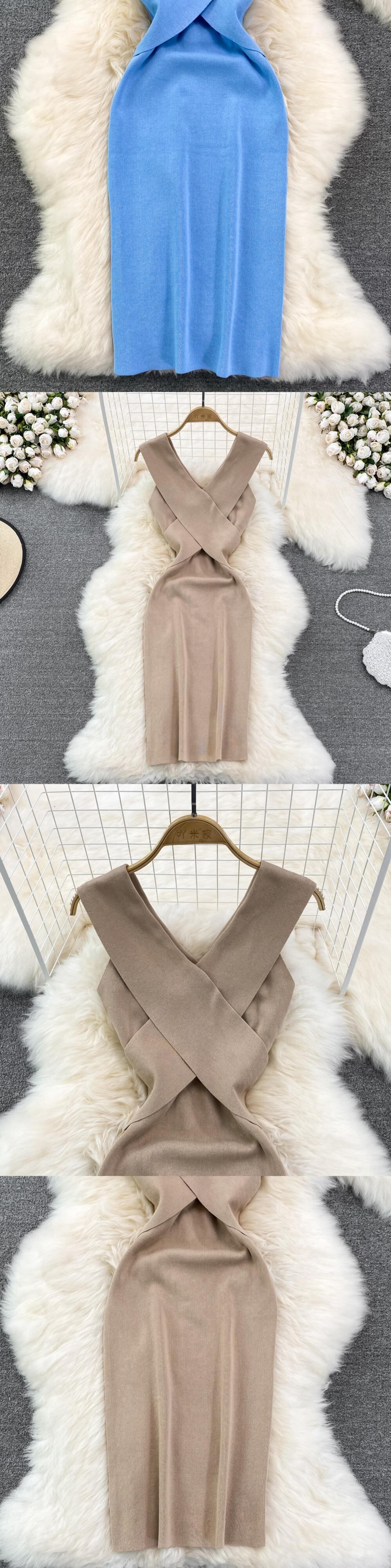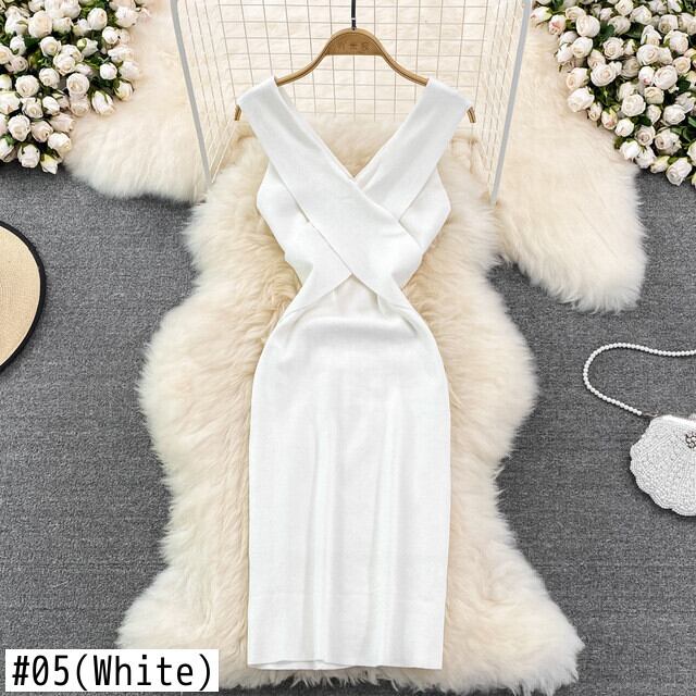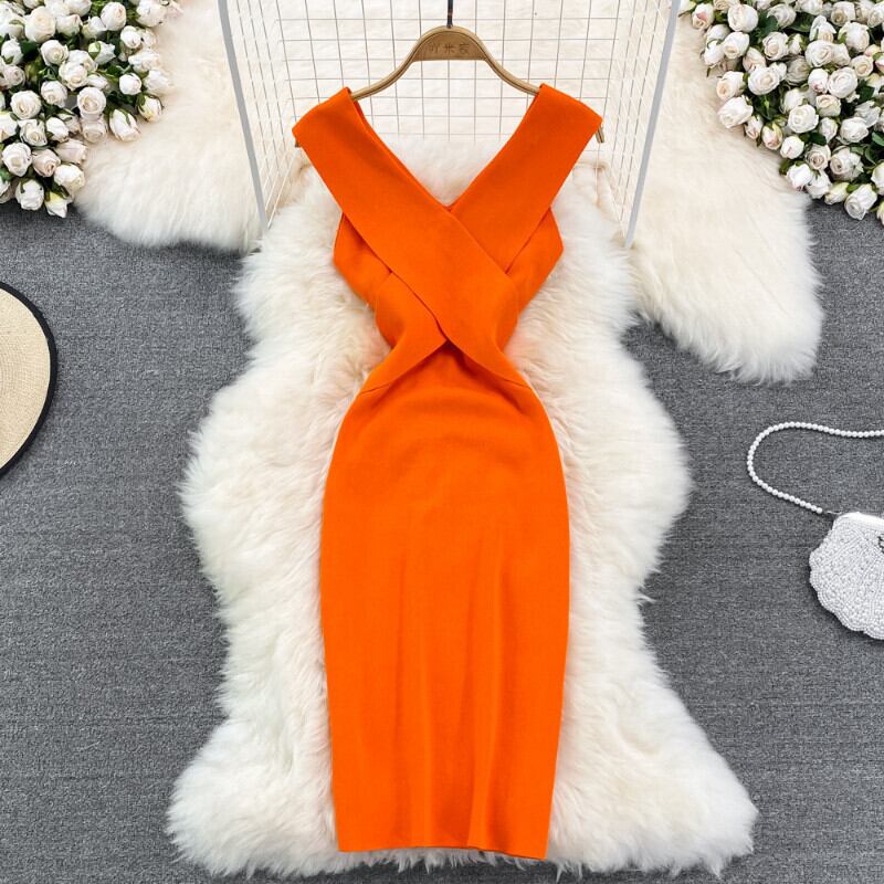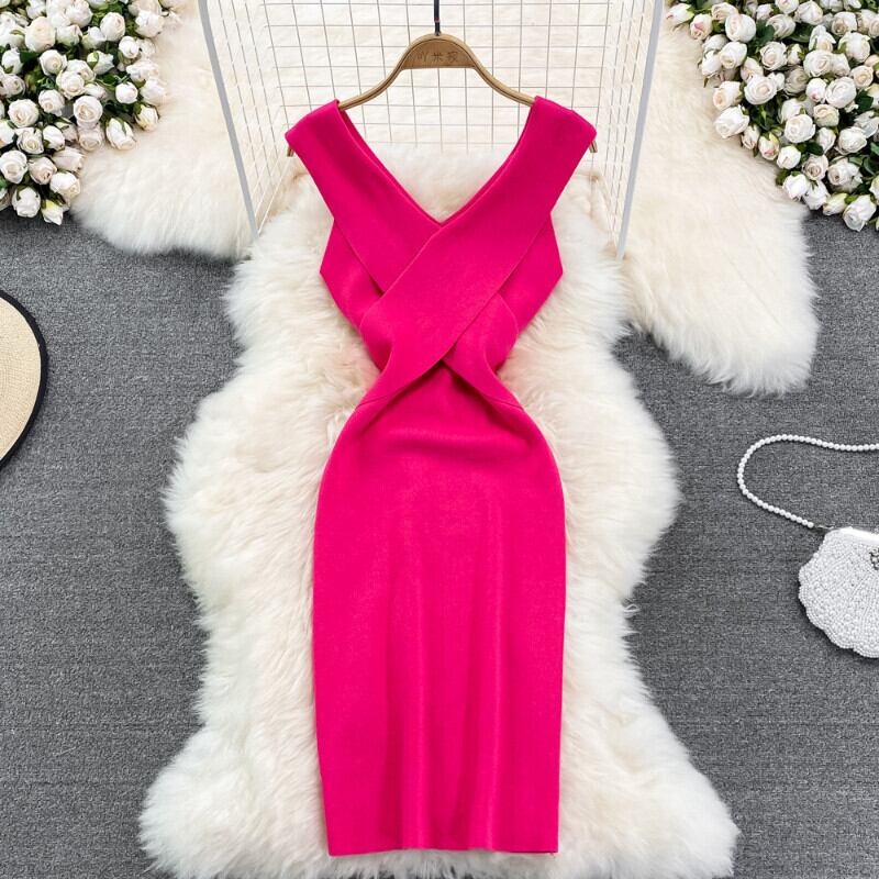 気質セクシー V ネックスリムフィットボディコン Vestidos デラップヒップノースリーブニットサマードレス V ネック 夏物 Vネック