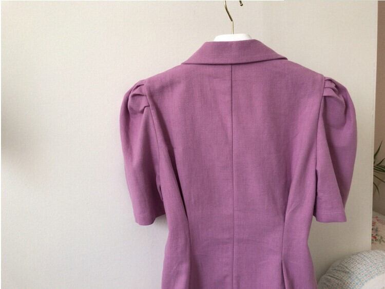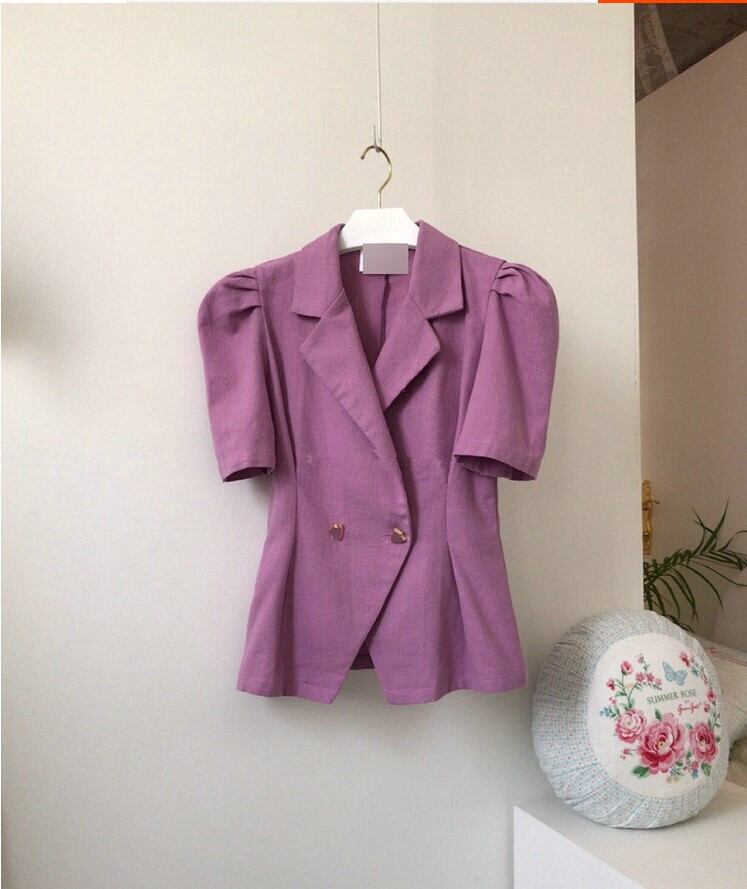 スリムウエスト紫色テーラードコート Y2k 半袖ブレザーシックボタントップスブレザーレトロクロップドブレザー Feminino ショート レッド ハーフスリーブ パープル