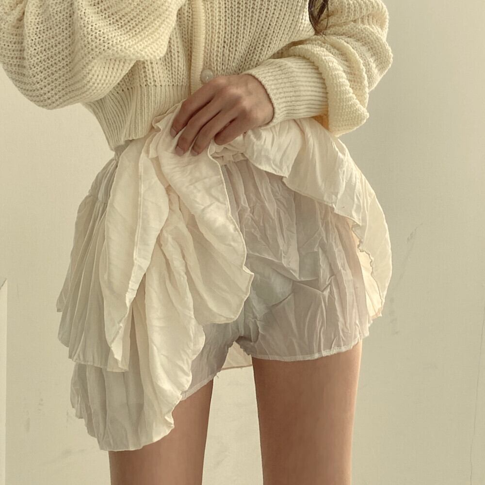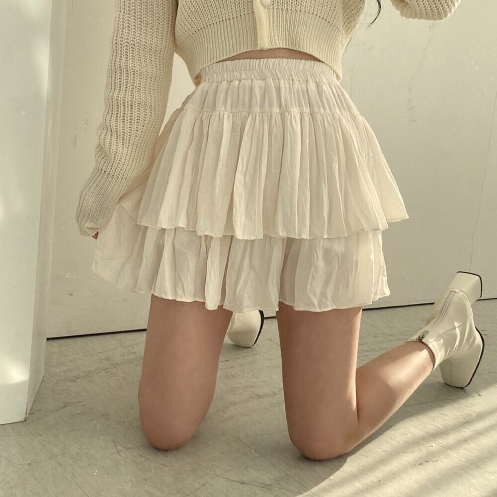 甘い夏弾性ウエストダブル白プリーツスカートワイルドプレッピースタイル段段フリルケーキミニスカート ホワイト エラスティック 伸縮 大人ガーリー スウィート キュート カジュアル サマー 夏物