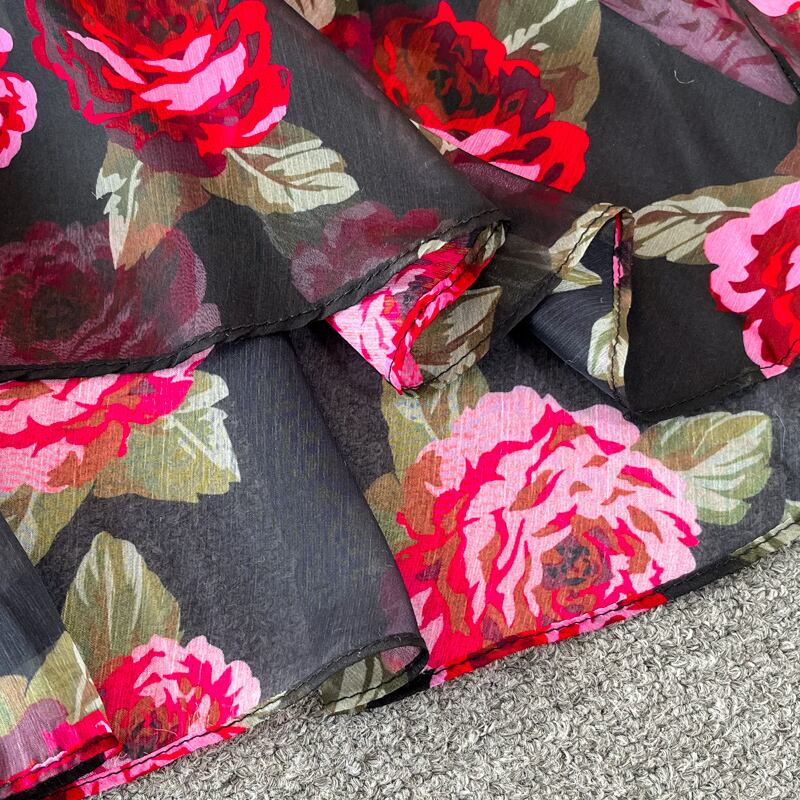 Vestidos デ夏スリムスタイル V ネックラップヒップフィッシュテールシフォン黒プリントドレスフリルマーメイドセクシー ブラック サマー 夏物 Vネック