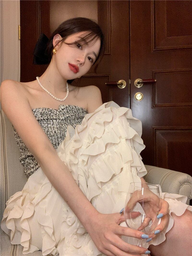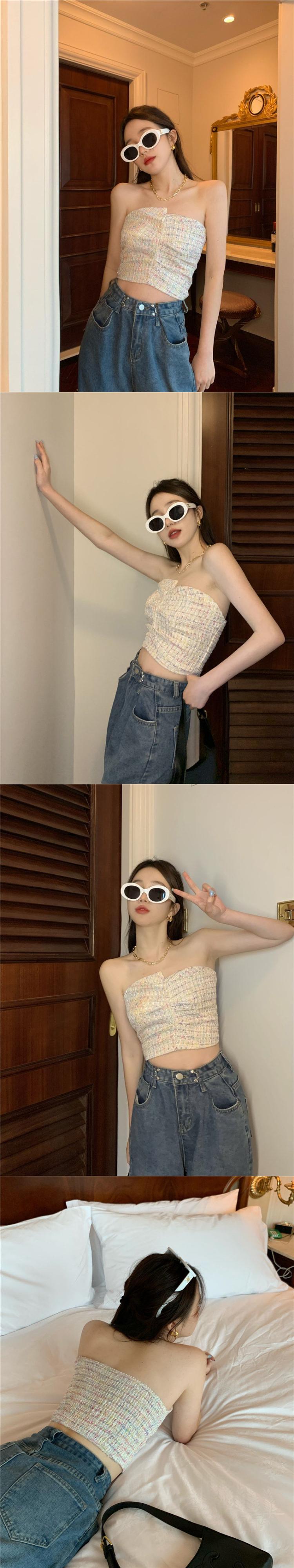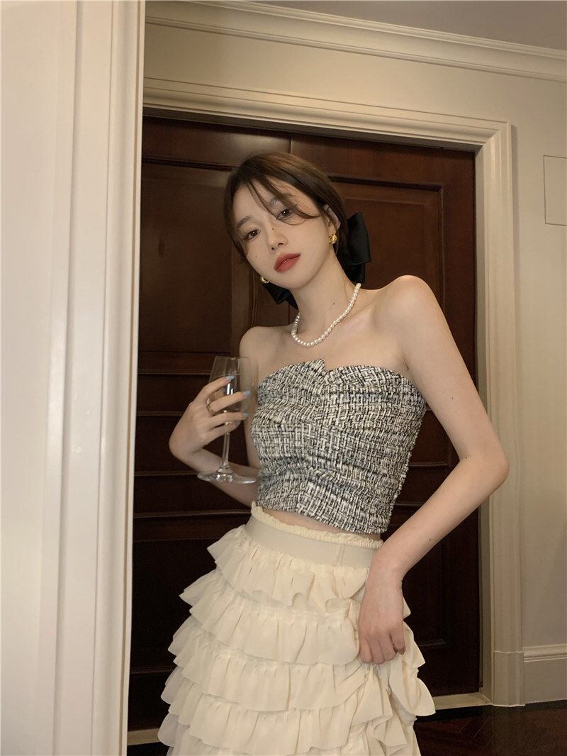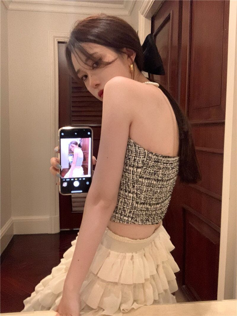 キャミソール気質レトロクロップドセクシースリムシンプルスタイルツイード折りホットガールズチェック柄シャツトップス