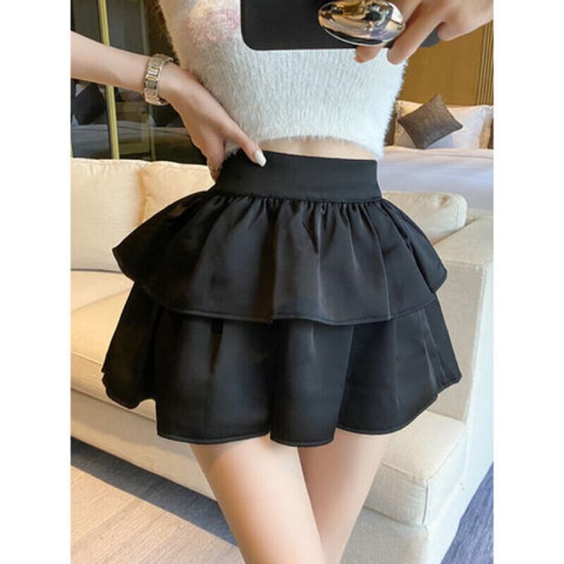 ミニスカートウエスト甘い夏秋ふくらんレイヤードアンダースカートセクシースカート段段 レッド 大人ガーリー スウィート キュート カジュアル サマー 夏物 オータム 秋物 ソリッドカラー