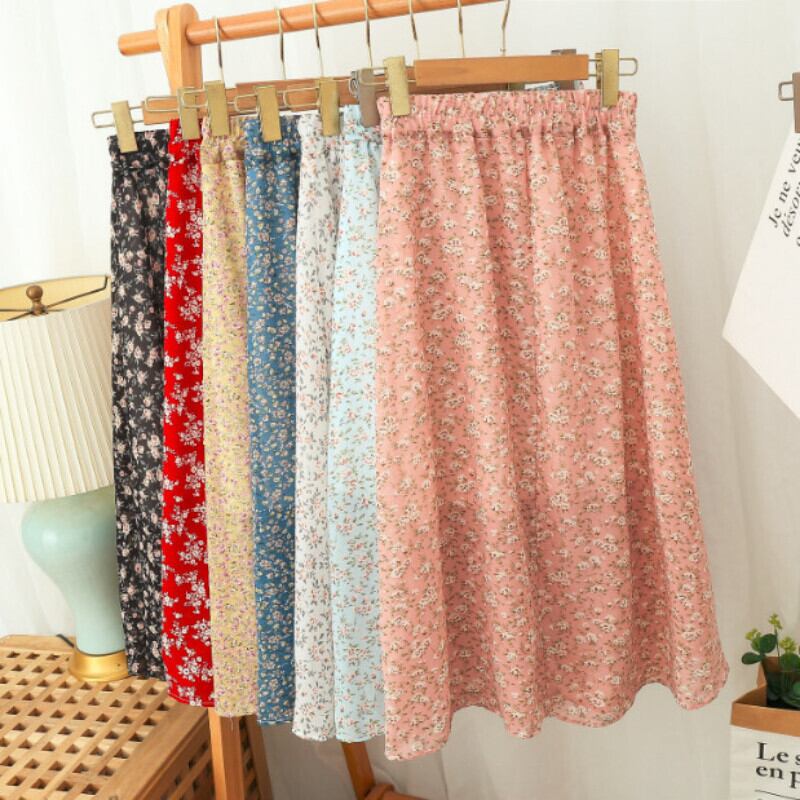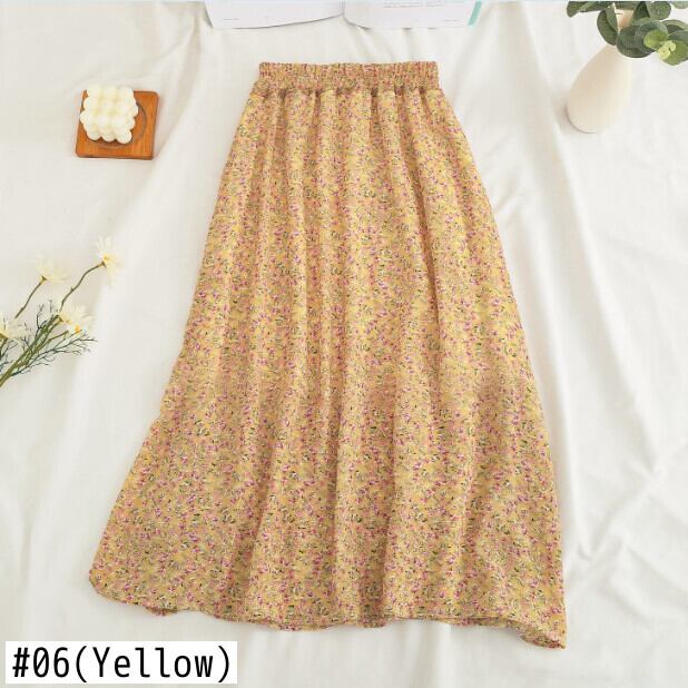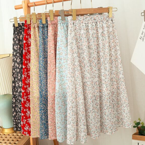 花柄夏シフォンスカートウエストミディ A ラインスカート弾性ウエストスカート段 Faldas エラスティック 伸縮 サマー 夏物 Aライン