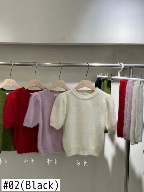 パフ取り外し可能半袖セーターセーター O ネックレッドニットセータートップ春ジャンパープルオーバー ショート ハーフスリーブ スプリング 春物 Oネック