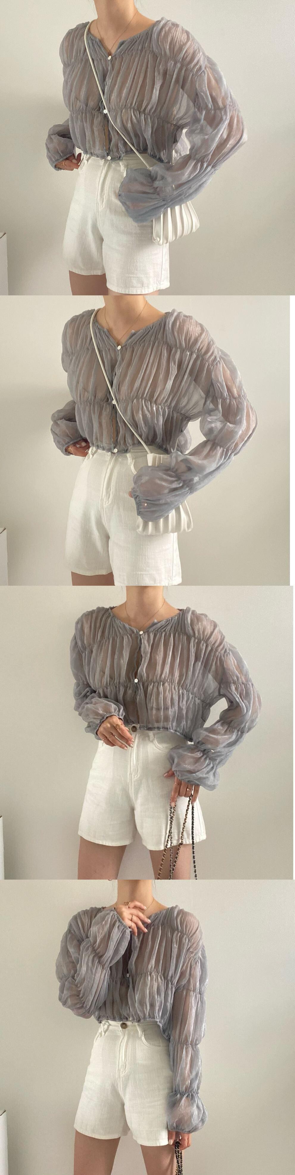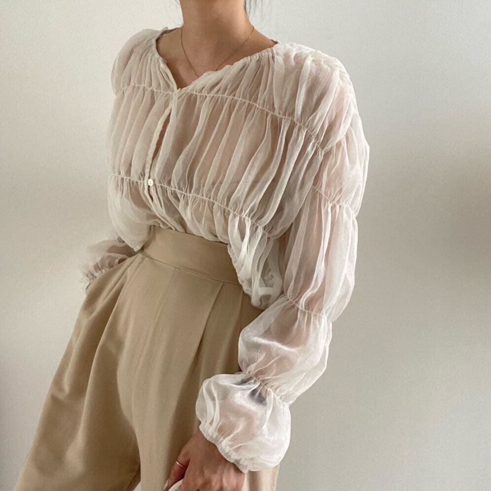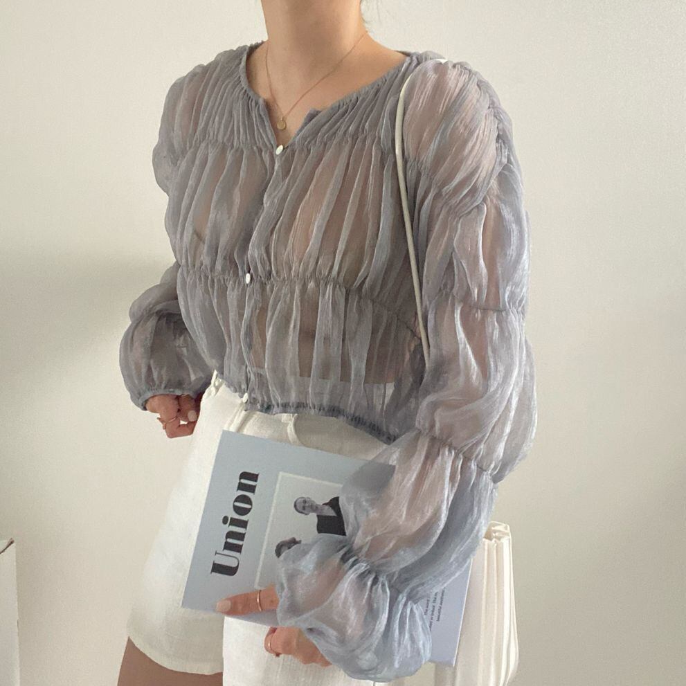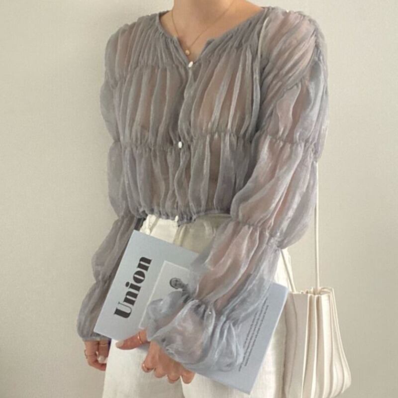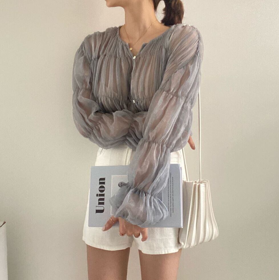 De Moda 長袖日焼け止めトップルーズプリーツ視点シャツグレーブラウスシャツ ロング