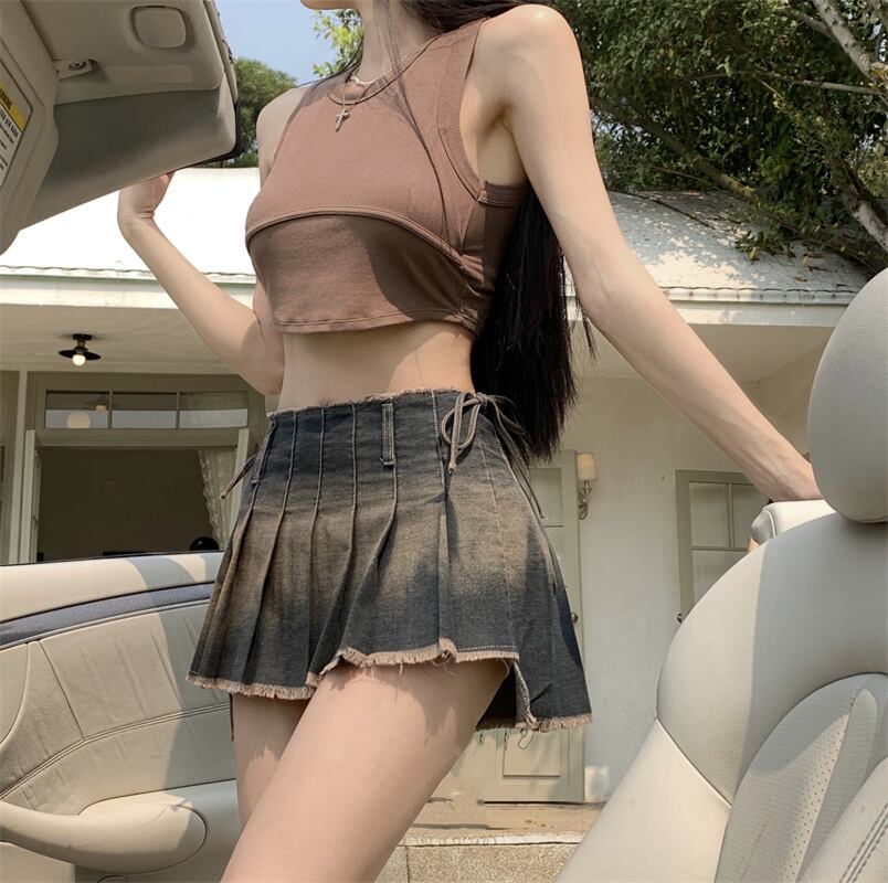 アメリカンレトロスパイシーガールスタイルセクシースリムフィットストリートワンピースショートデニムスカートプリーツスカート Y2k 原宿段 Faldas かわいい