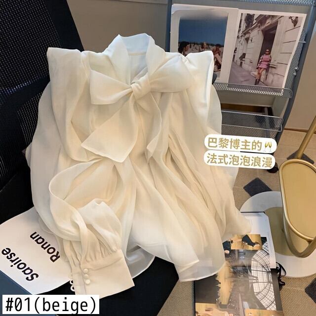 Ins es es リボンレースアップシフォンシャツフリルトップスシャツオフィスレディセンス 会社 学校 通勤や通学にも