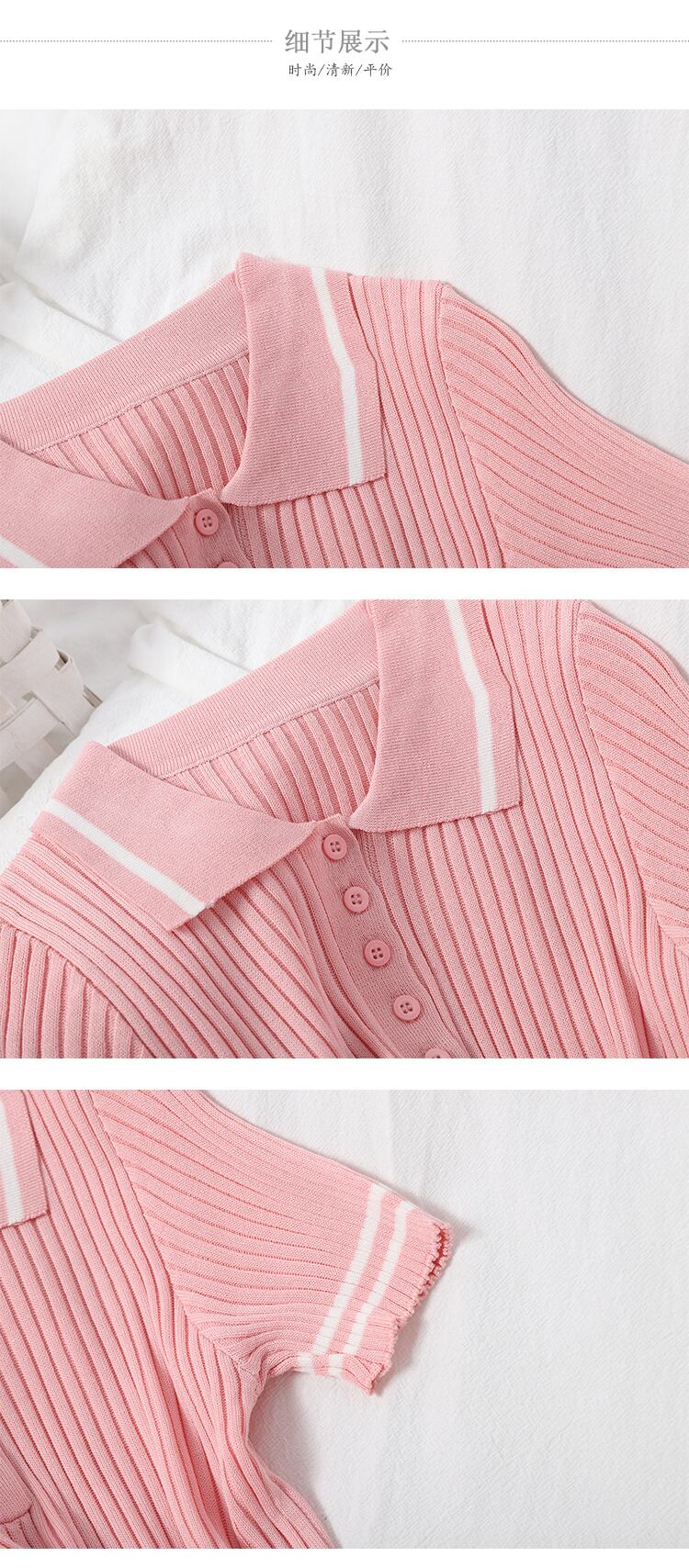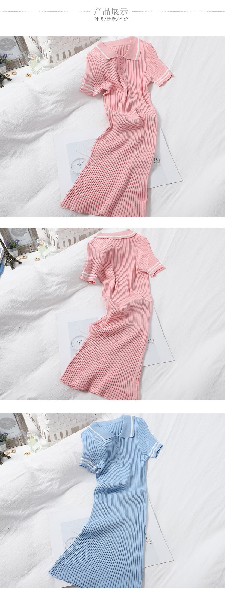 コントラストラペルスリムフィット弾性ラップヒップニット半袖ストライプドレスシングルブレストセクシー Vestidos 用 ショート ハーフスリーブ エラスティック 伸縮