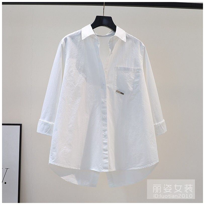 バックスプリットコットンシャツルーズ長袖シャツデ春ワイルドボタンシャツ白ブラウストップス ロング ホワイト スプリング 春物