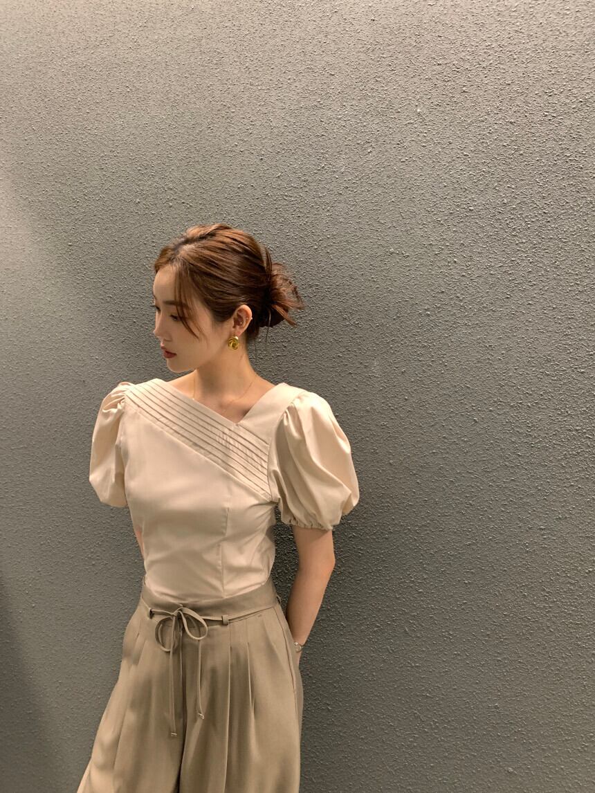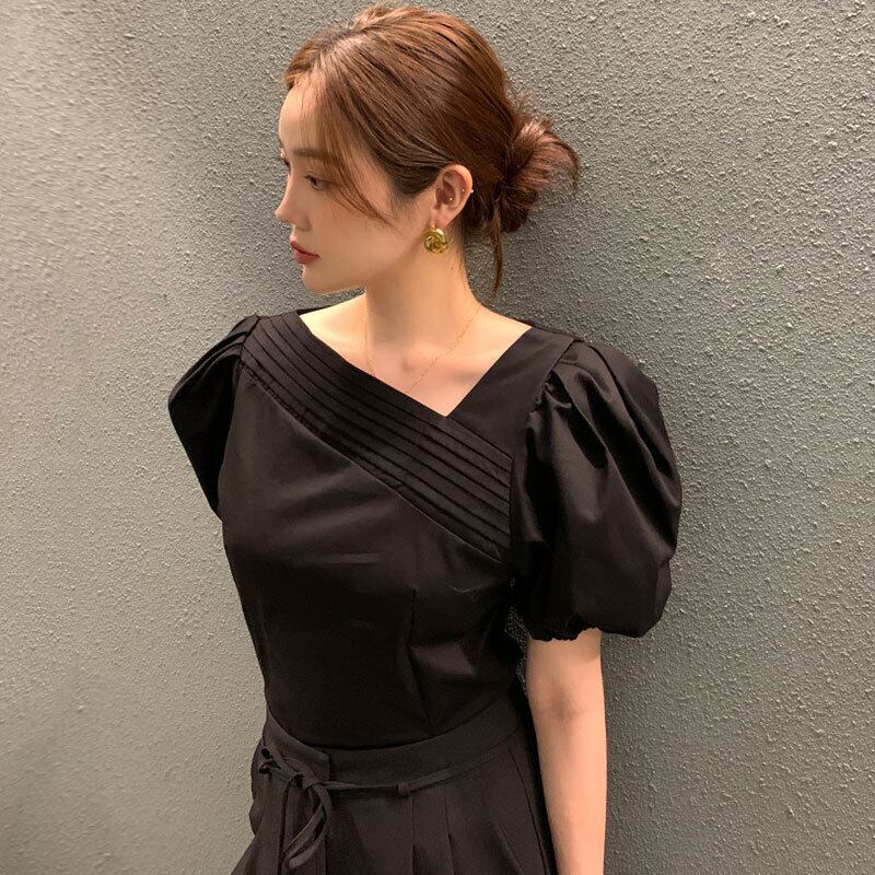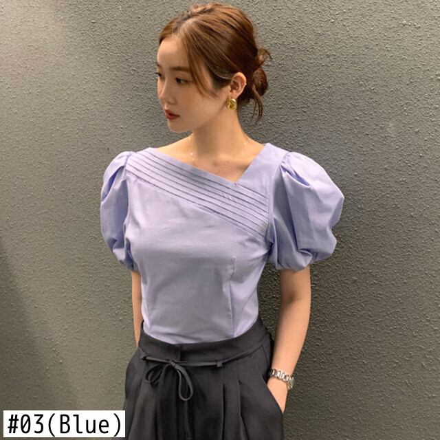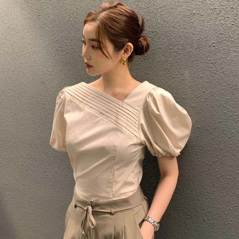 シャツスリム半袖多彩斜め襟不規則プリーツシャツトップ白クロップブラウス ショート ホワイト ハーフスリーブ