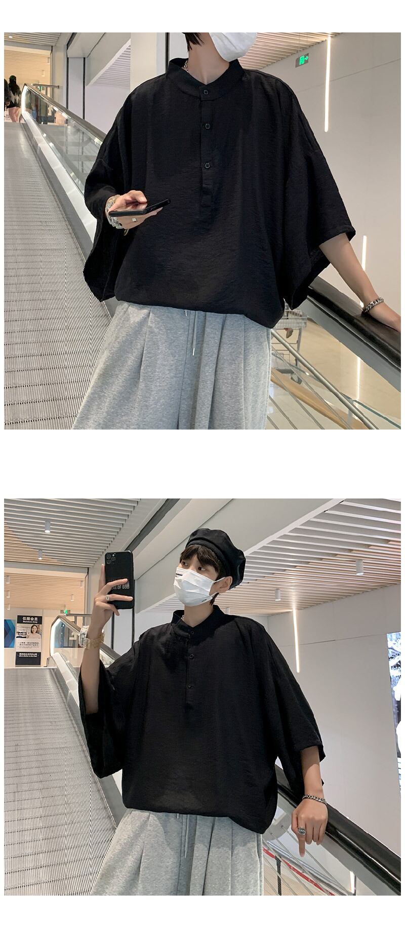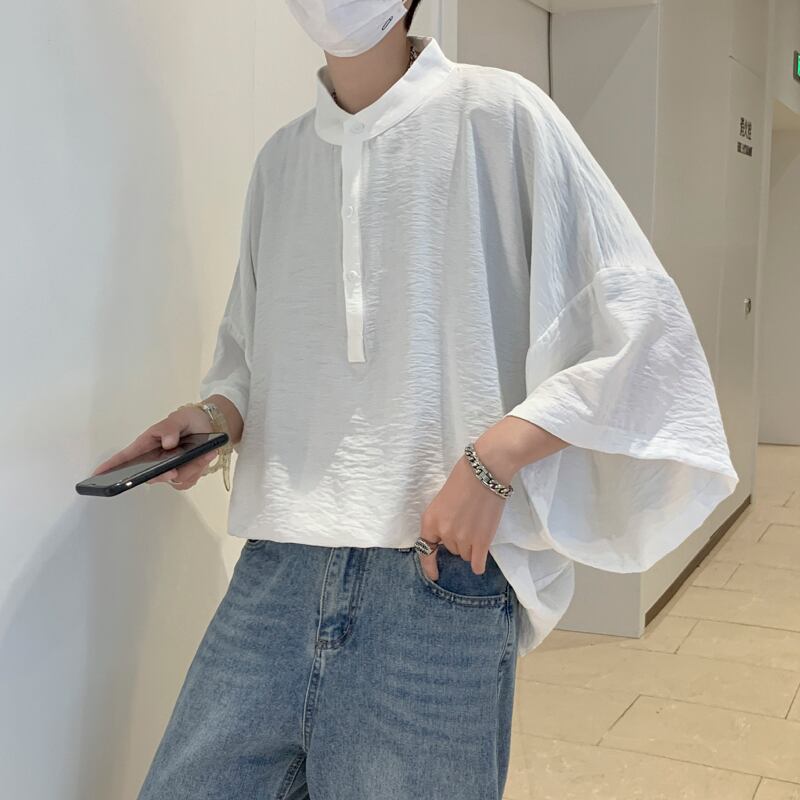 ese ルーズスタンドバットスリーブトップ夏半袖シャツショート白シャツブラウスシャツ ホワイト ハーフスリーブ サマー 夏物