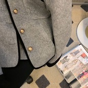 ショートグレーキルティングコートコントラストラペルウールジャケット秋冬コート原宿 Jaquetas Chaqueta かわいい オータム 秋物 ウィンター 冬物