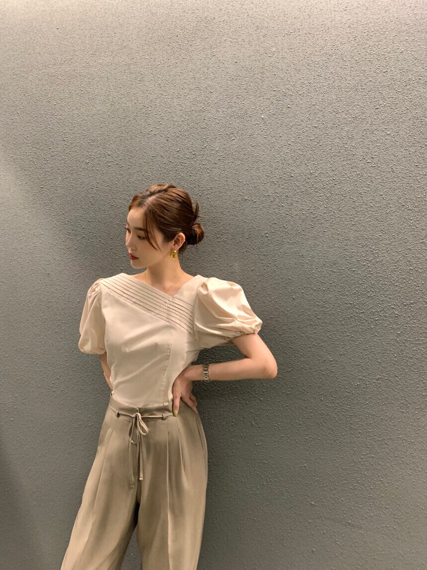 スリム斜め襟不規則プリーツウエストクロップトップス出荷白 T シャツグランジグラフィック T シャツ ホワイト Tシャツ