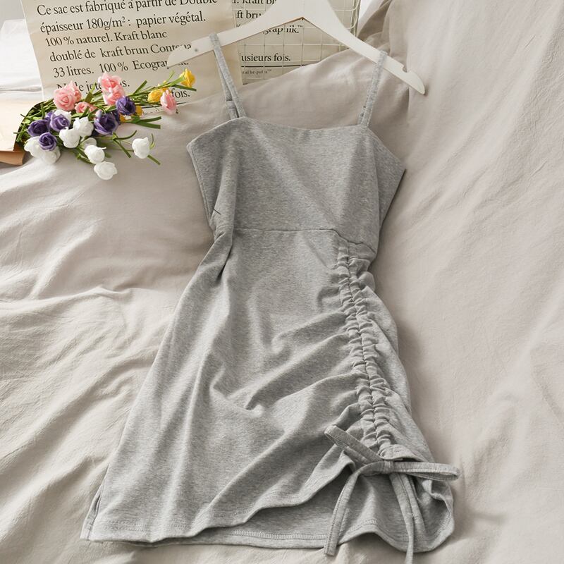 ブラックホワイトグレー Vestidos デ巾着プリーツセクシーサスペンダードレスミニワイルド Y2k ドレスストラップ