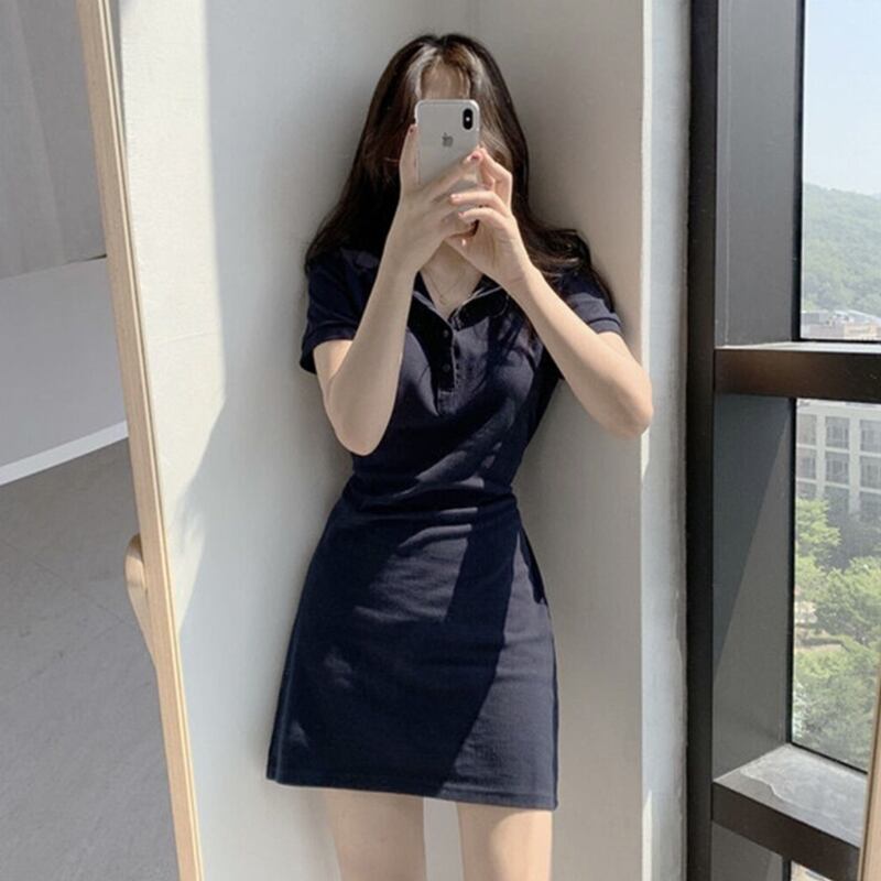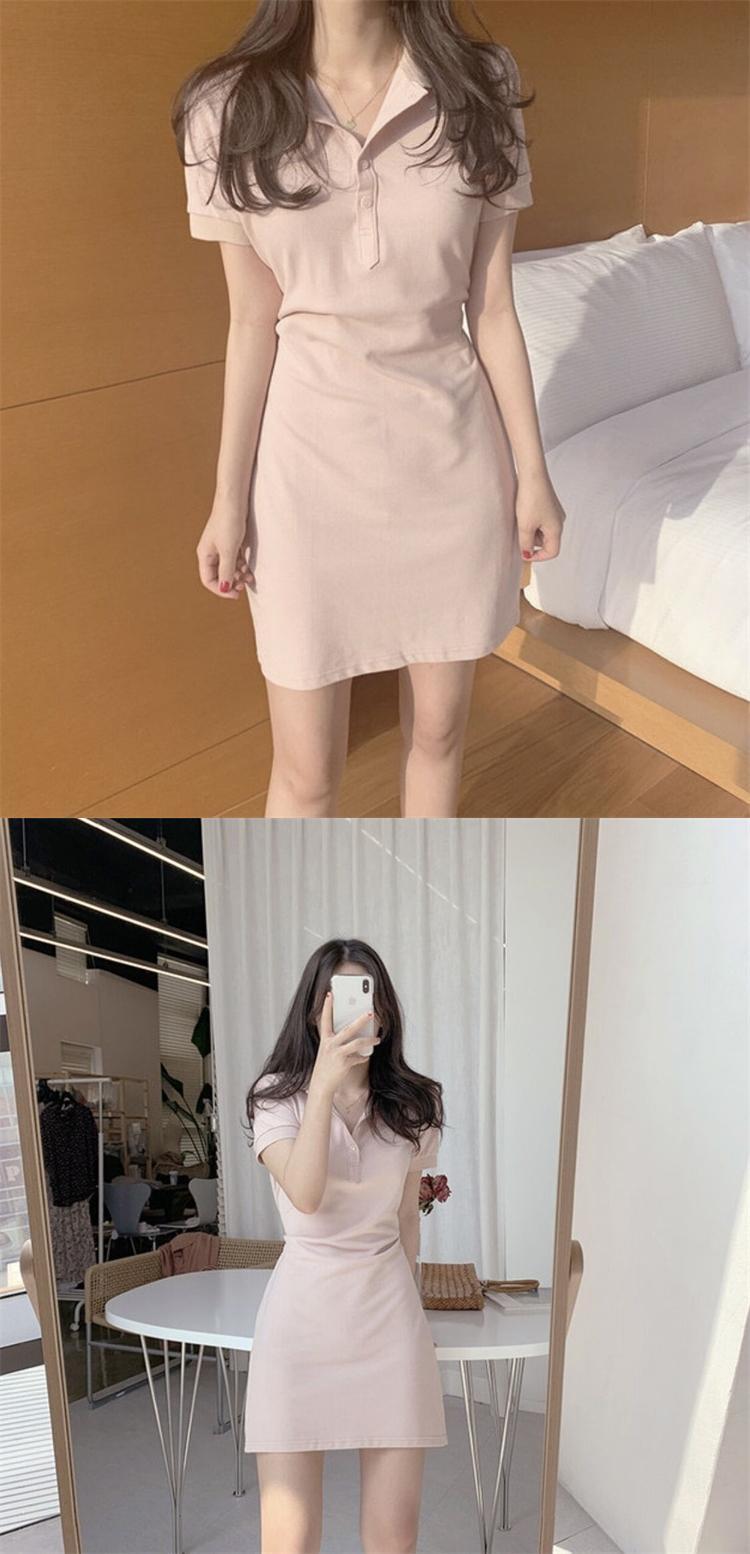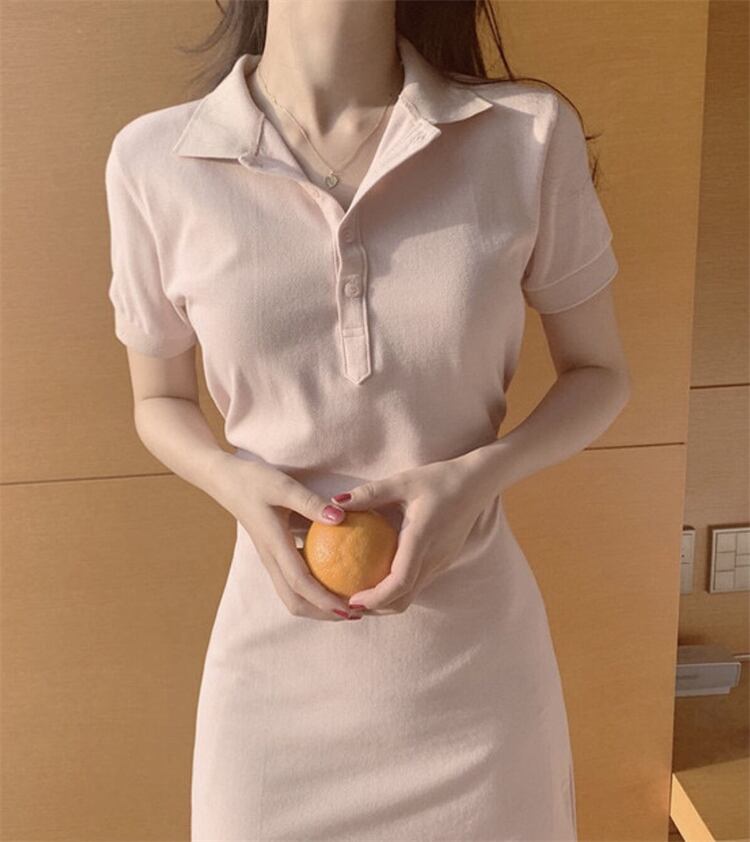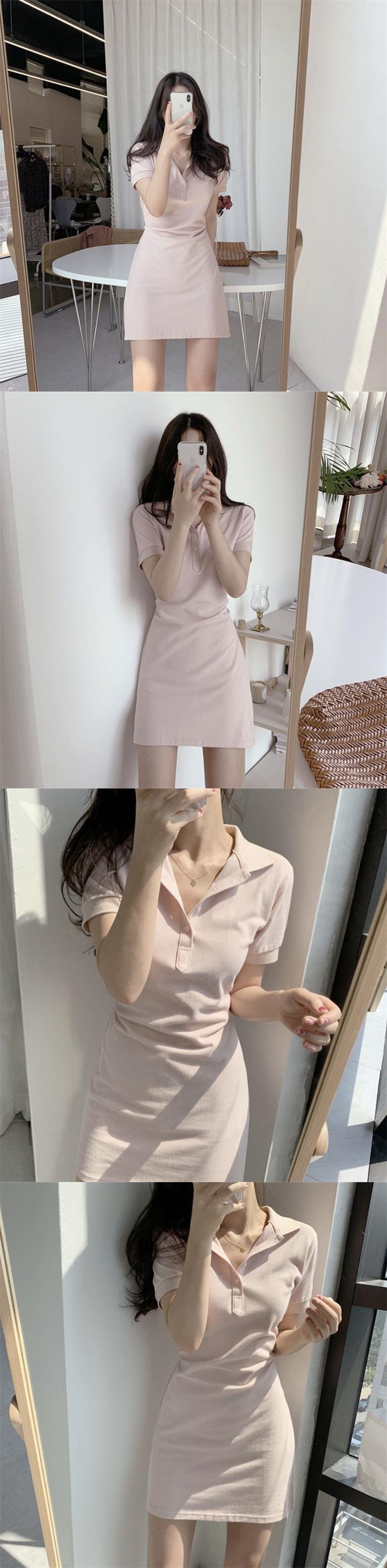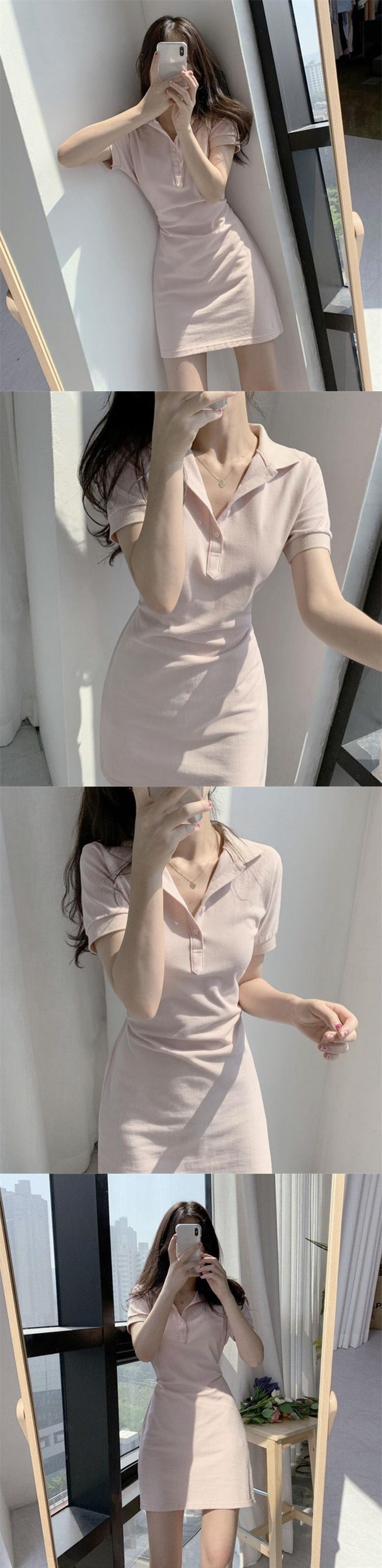 ターンダウンカラー半袖ピンク T シャツドレスボディコン夏 Vestidos es Sweet ミニドレス ショート ハーフスリーブ 大人ガーリー スウィート キュート カジュアル サマー 夏物 Tシャツ